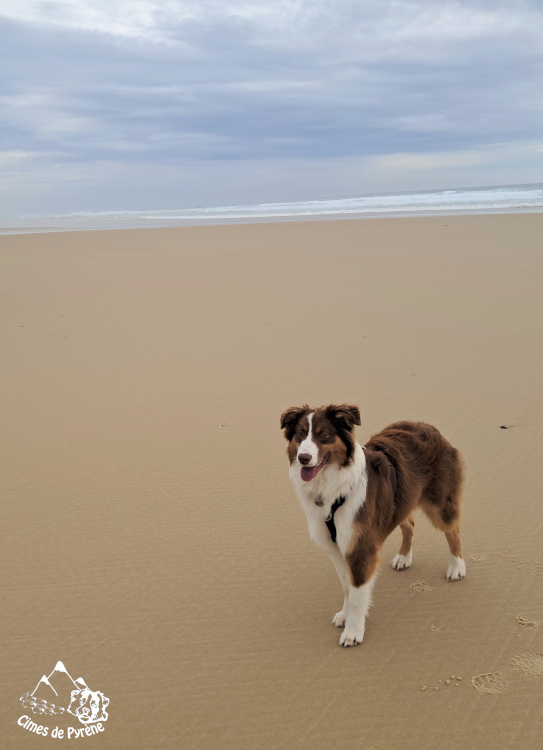 8 mois : balade à la plage, avant d’aller en week-end de stand Couleurs de Pyrène en concours d’agility 😉